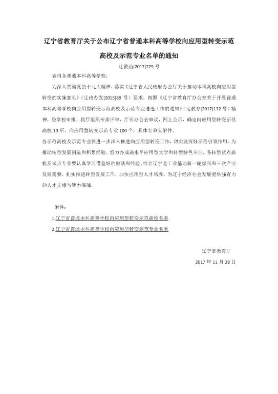 辽宁省普通本科高等学校向应用型转变示范专业名单.xlsx