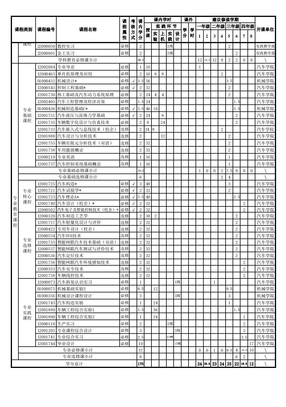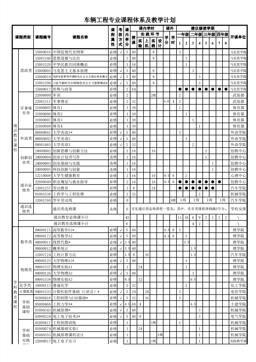 车辆工程专业人才培养方案