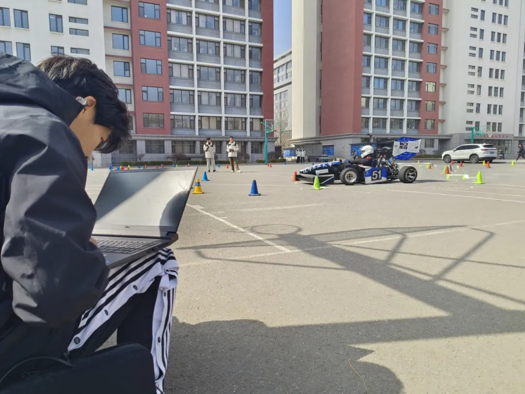 正式开始训练之前,队员们仔细摆放训练桩,反复确认八字环绕场地的准确性,尽最大可能减小误差,认真全面地检查赛车,只为保障车手的安全以及训练的无误、高效率。