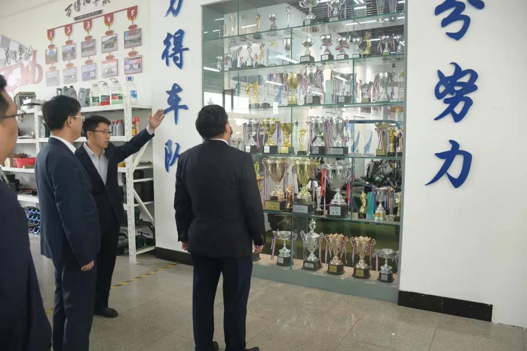 移步到荣誉墙,张忠洋老师向来访嘉宾详细介绍了万得车队历年来所获得的各项荣誉和成绩,各位领导对万得车队取得的成绩表示肯定。