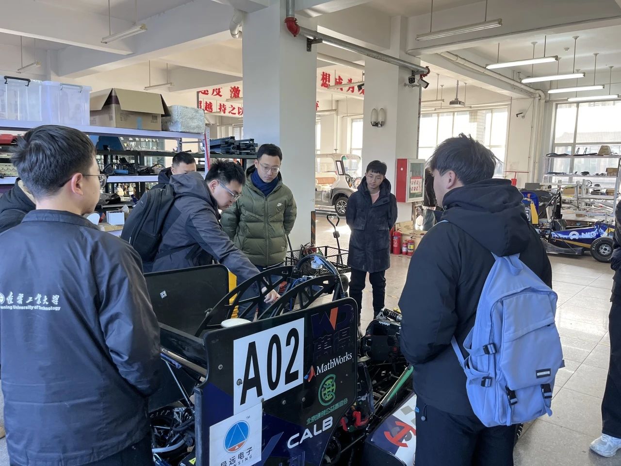 电子科技大学Fury车队队员在万得车队队员的陪同下在大学生科技创新实验室参观。围绕23赛季A02赛车,我们互相交流参赛心得,展开更深层次、更为具体的探讨。