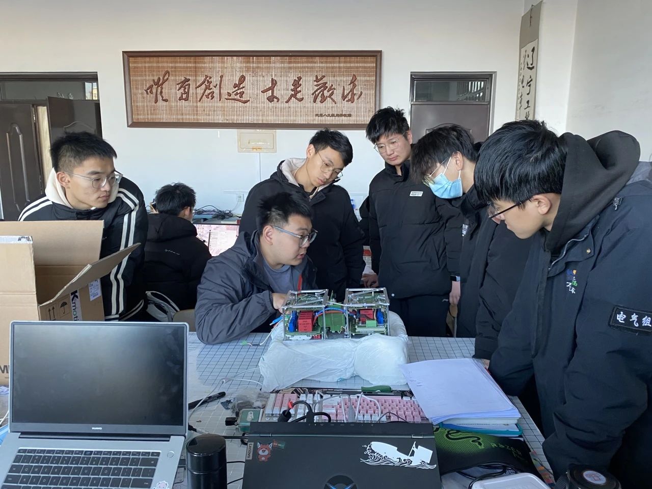 随后电子科技大学Fury车队队员跟随我们的队员分别来到电车、无人车的工作室,感受我们的工作氛围。两队队员在电车工作室共同探讨AMK电机控制器相关问题。