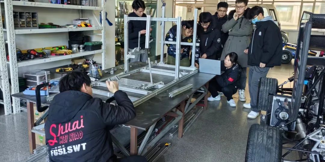 山赶着山,山山慢慢结成关。假期已到,但我们紧张的备赛从未停歇,队员们凝心聚力、团结协作,一步步地使赛车展现雏形。