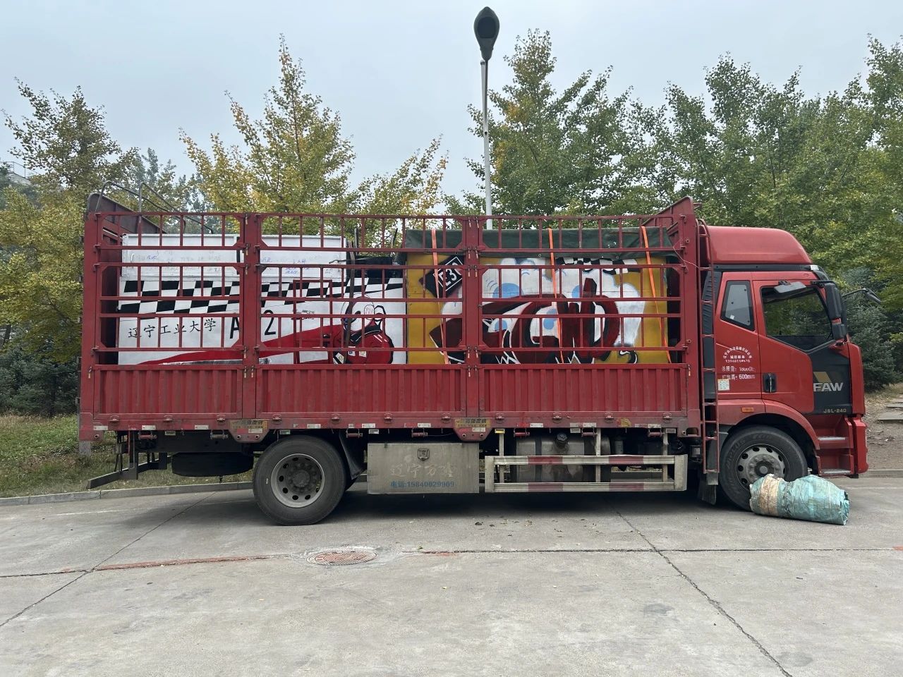 和无人驾驶赛车队A02号赛车装上货车,