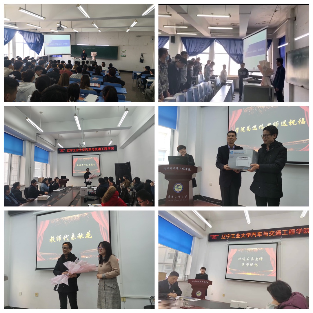 刘峰首先介绍了石晶老师的工作简历以及在教学科研等方面取得的奖励荣誉,随后播放了学院精心制作的“杏坛风华,岁月流金”视频,一起回首石晶老师工作战斗过的日子。教师代表魏丹向恩师石晶敬献鲜花并表达深深的祝福。石晶老师回顾了他在辽工大汽车学院工作的时光,他深情地说到:“辽工大,培育了我,汽车学院就是我的另一个家。”最后他表示,虽然他不在工作岗位上了,但定会心系汽车学院、时刻关注学校发展,祝愿学校和学院明天会更好。