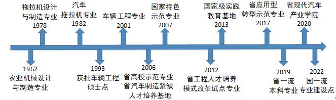 1962年设立本科,1978年是全国十所具有农机专业的本科院校之一,1993年获批车辆工程硕士点,2007年获批国家教育部特色专业,建有国家级实践教育基地、省级教学科研平台15个,为人才培养提供良好基础。