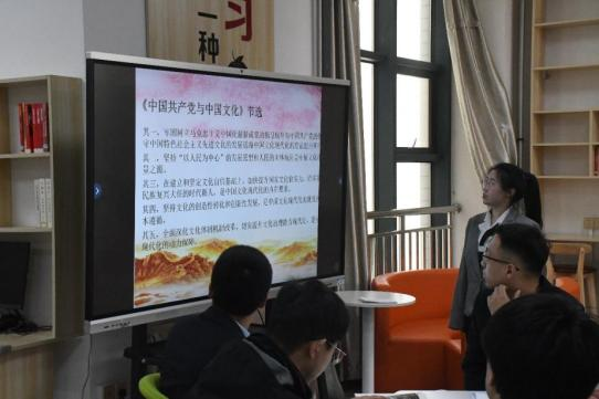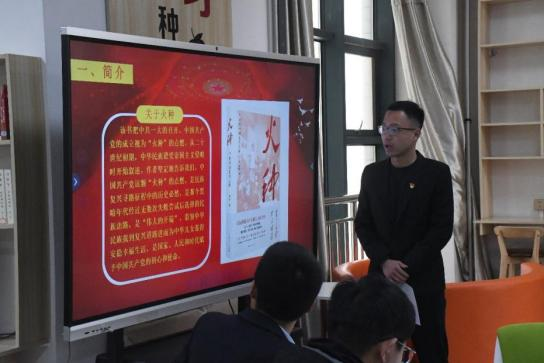 活动伊始,刘姝依同志介绍此次红色书籍分享的书目—《中国共产党与中国文化》和《火种—寻找中国复兴之路》。《中国共产党与中国文化》以整体性视角,立足中华优秀传统文化、集成革命文化、坚定新时代文化自信等专题,展现了中国文化的变革历程。《火种—寻找中国复兴之路》通过红色故事,弘扬中国共产党人革命精神,是一本党史教育的生动教材。随后,4名学生党员代表分别为大家分享读书心得。田甜和魏美玲同学通过阅读《中国共产党与中国文化》,认识到中国共产党是如何在传承和弘扬中国文化的基础上推动中国现代化建设。刘泊居和张要强同学通过阅读《火种—寻找中国复兴之路》,明白了中国成功走向复兴之路的关键抉择,红色火种如何在沉沉黑夜中成功燎原,更加坚定了对党的忠诚。