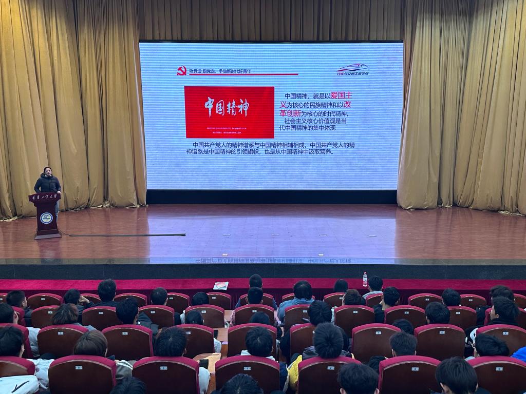 学院党委副书记鄢月以“听党话 跟党走 争做新时代好青年”为主题,带领2023级新生重温中国共产党一百多年来走过的辉煌历程。她号召同学们在思想上坚定理想信念、在学习中要下苦功夫、在道德上注重道德实践、在决断选择中要明辨是非、在做人做事上要踏实扎实,弘扬伟大建党精神,踔厉奋发、勇毅前行。学生党支部书记刘天鹤介绍了学院党组织的基本概况、入党条件和要求。