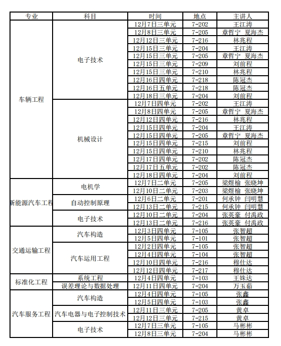 车辆221班陈冠杰、车辆222班王江涛、车辆223班章哲宁、车辆223班夏海杰、车辆224班刘前程、车辆225班林兆程、新汽221班何承钟、新汽221班闫明慧、新汽222班梁煜榆、新汽222班张晓坤、新汽223班张英豪、新汽223班付禹政、交运221班张智超、交运222班穆仕达、标准化221班万玉茹、标准化221班王姝达、汽服221班张鑫、汽服221班黄卓、汽服221班马彬彬