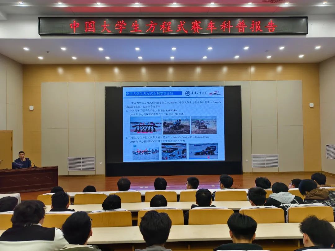 科学,是打开未来之门的钥匙,是点燃梦想的火炬。为了激发同学们的创新潜能,全面提升个人专业素养,汽车学院于11月22日在5号楼党员活动中心举办了以“中国大学生方程式赛车”为主题的科普讲座。此次讲座荣幸邀请到了李刚院长,以及来自万得车队的油车、电车、无人车的三位队长作为主讲嘉宾,2024级研究生、2021级、2022级及2023级部分本科生参加了本次活动。