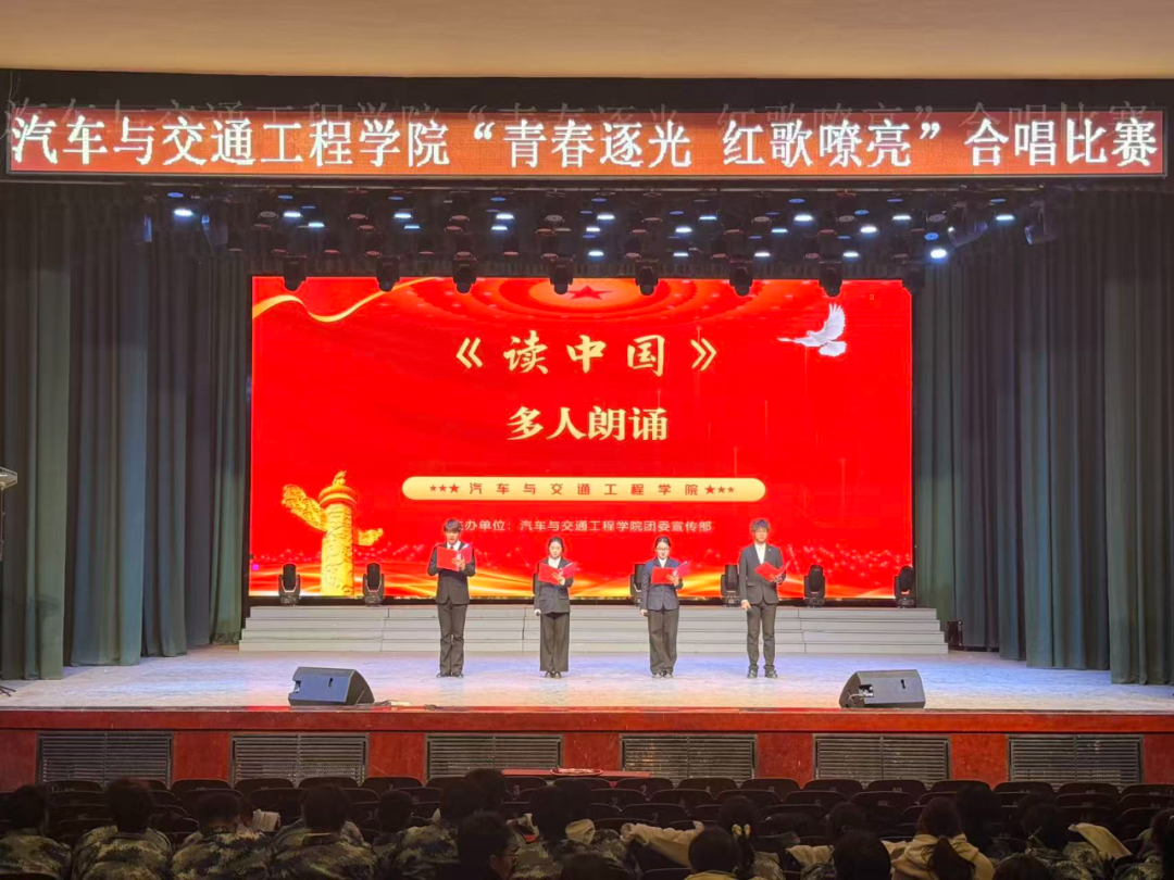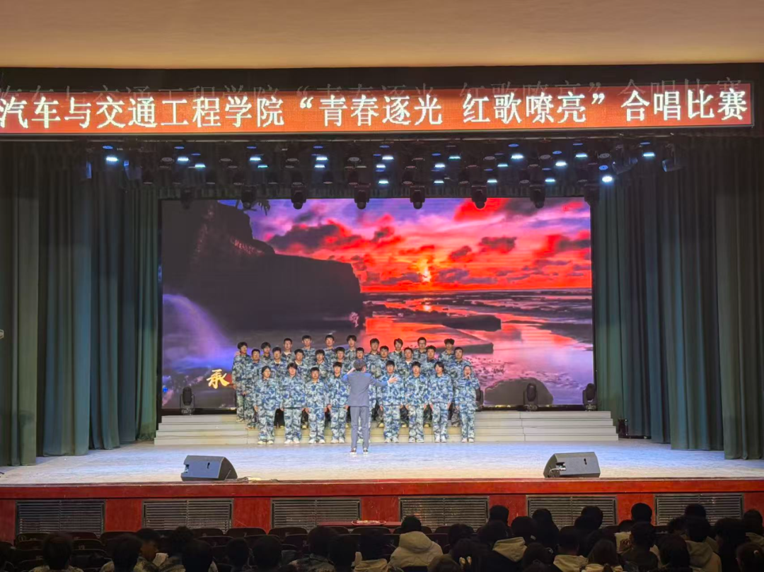 活动在新汽252班激昂的合唱《国家》中拉开序幕,瞬间点燃全场。新汽251班的《当那一天来临》、车辆254班的《黄河大合唱》,以铿锵与坚定歌声,诠释青年的使命与对家国的热爱;车辆253班的《我爱你中国》深情唱响,引发全场强烈的爱国共鸣。车辆251班、新汽253班、交运251班接连带来《万疆》《我和我的祖国》《歌唱祖国》等曲目,或铿锵有力,或掷地有声,持续掀起高潮。车辆255班、标准化251班以《光荣与梦想》《夜空中最亮的星》展现昂扬风貌,车辆252班、交运252班用《篇章》和《强军战歌》为合唱环节画上完美句点。