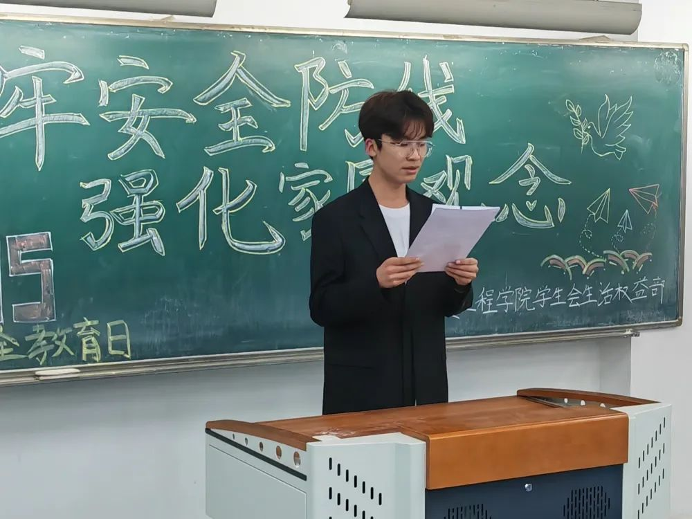 会议第一项,生活权益部负责人马铭君同学通过ppt向大家介绍了什么是国家安全,国家安全的基本内容,如何贯彻国家安全观等六个跟国家安全息息相关的基本内容。紧接着,组织部同学范英博和生活权益部同学孟非凡分别以“筑牢保密防线,维护国家安全”和“网安,民安,国家安”为主题做国家安全教育主题演讲。通过这两名学生干部的演讲,参与本次宣讲会的学生干部纷纷表示对于国家安全教育有了更深刻的认识,同时可以更好地为身边同学进行国家安全教育知识的宣传。