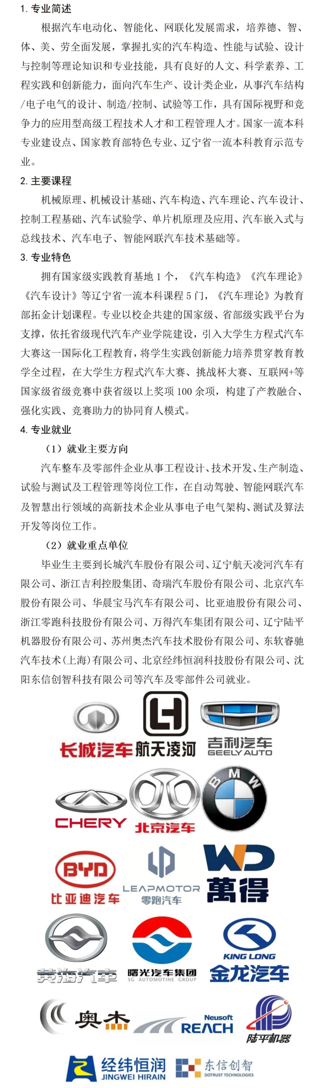 近年来,学院获得辽宁省本科教学成果奖4项,获得研究生教学成果1项、建立国家级工程实践教育中心1个、省级工程实践教育中心2个、专业学位硕士研究生联合培养省级示范基地4个,校企共建“新能源汽车联合试验中心”“新能源汽车创新联盟”。学院获批省一流本科课程9门,省虚拟教研室1个,出版教材11部,获省优秀教材建设奖2部。学院开展了“长城班”“万得班”“奥杰融合班”“东信创智班”等多种人才培养模式,获批辽宁省现代汽车产业学院。